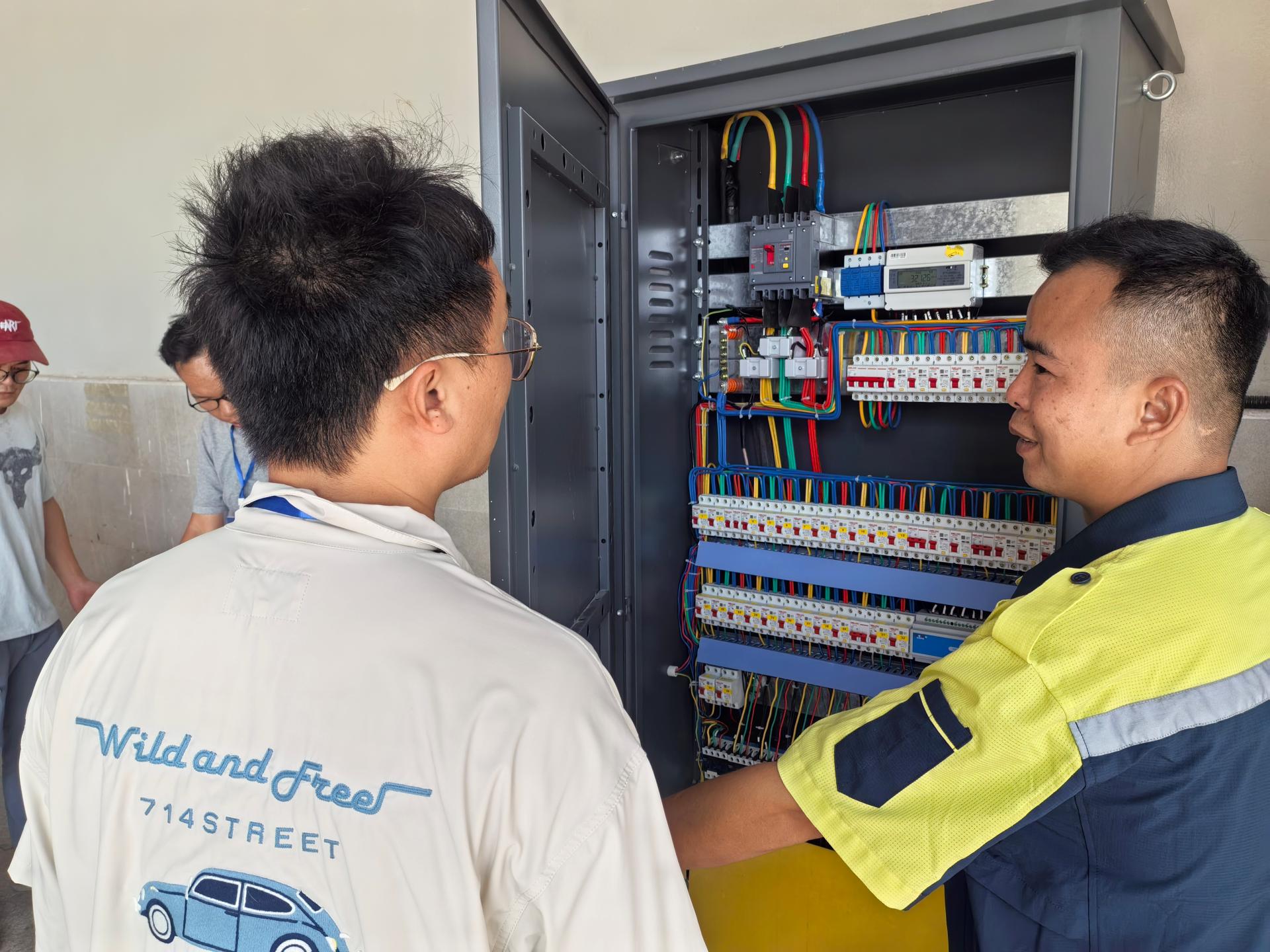 工程師逐個(gè)檢查配電箱