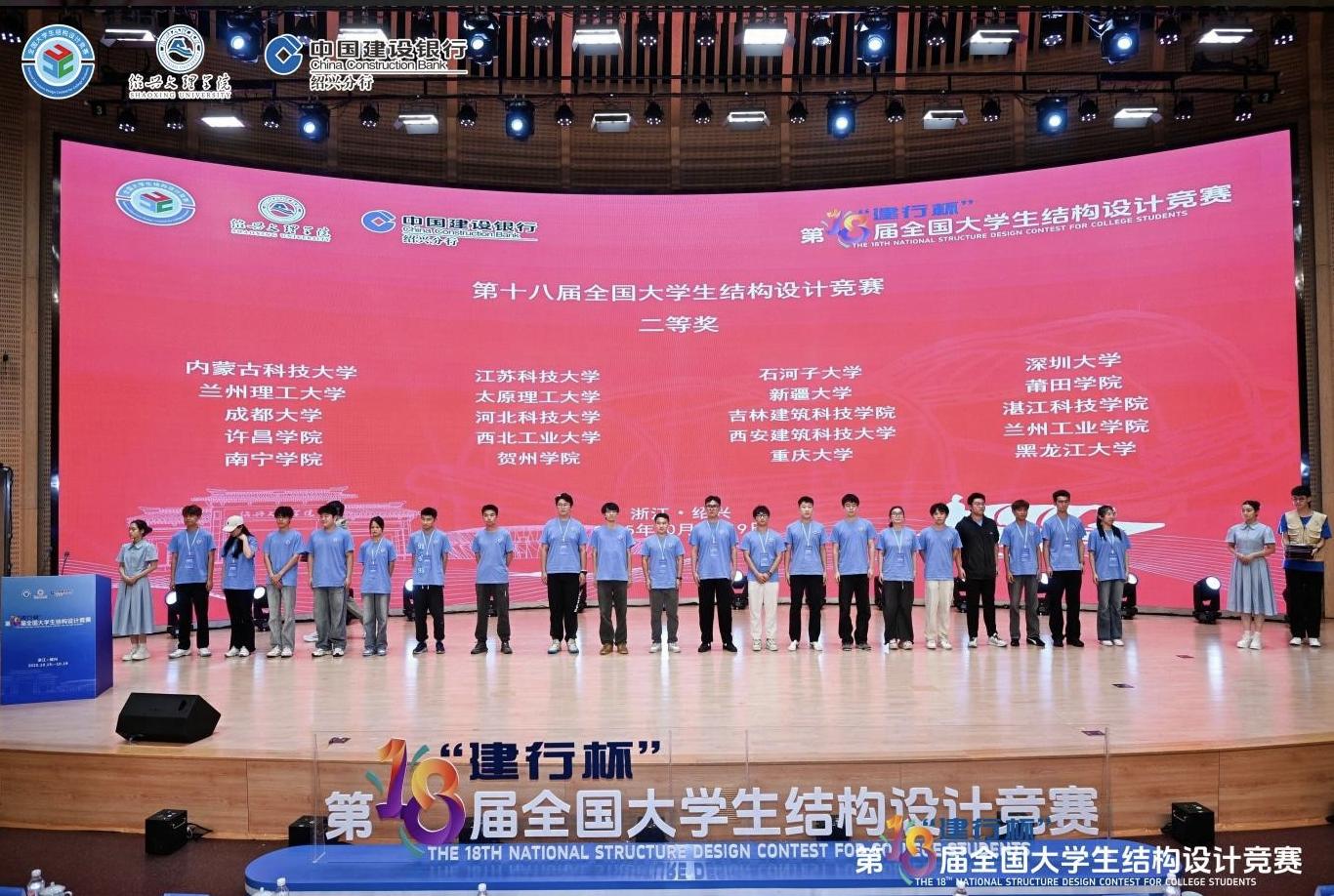 10月19日,在浙江紹興舉辦的“建行杯”第十八屆全國大學生結構設計競賽圓滿落幕。南寧學院土木與建筑工程學院參賽作品“邕瀾號”(參賽學生:顏秋萍、周崇禧、嚴波,指導老師:梁小光、賴月漂)與來自全國119所高校的120支隊伍同臺競技,最終以全國第48名優異成績榮獲二等獎,相較歷年最好成績,排名躍升30位。