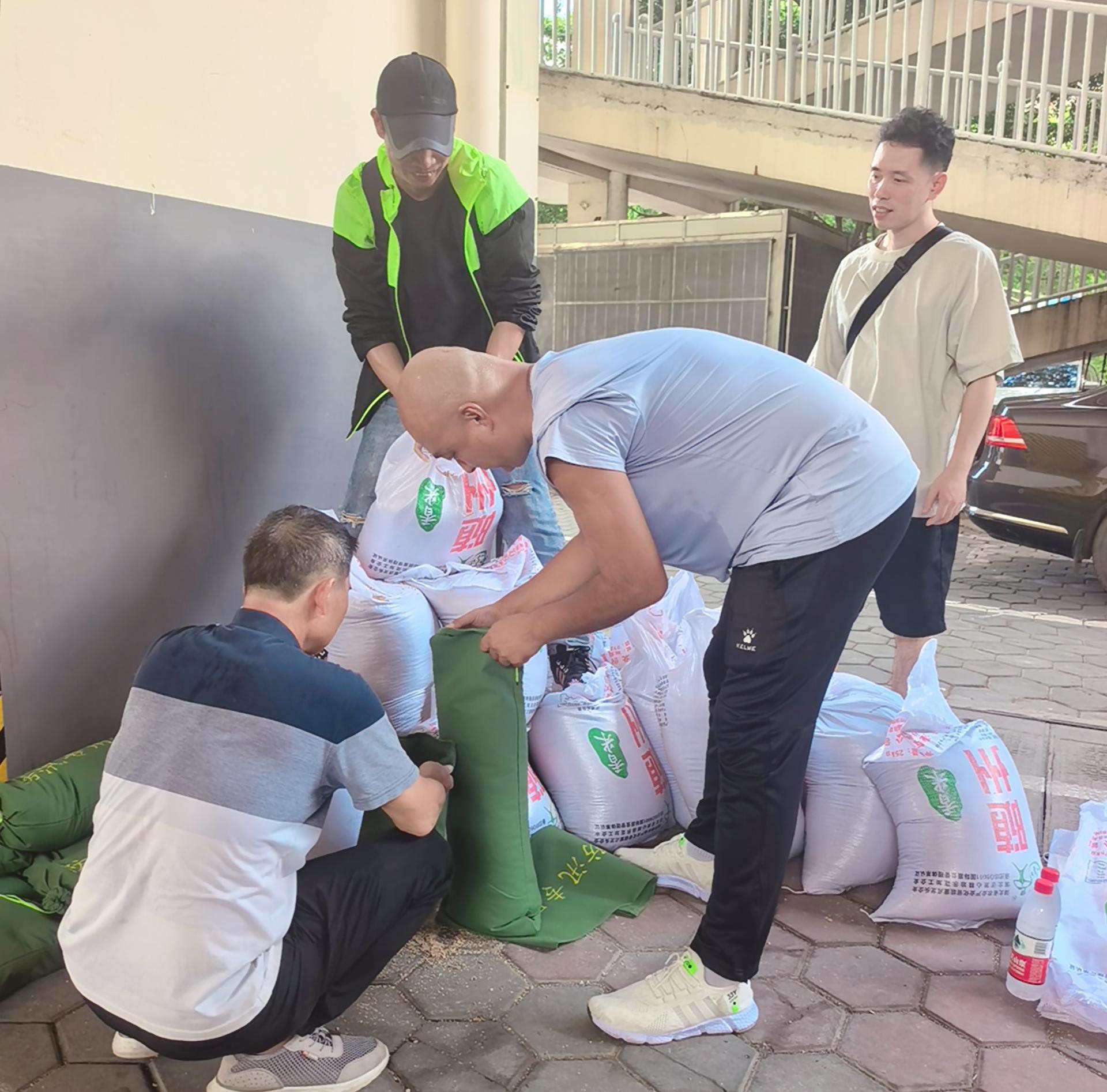 公司資產(chǎn)專管員現(xiàn)場(chǎng)協(xié)助制作防洪沙袋