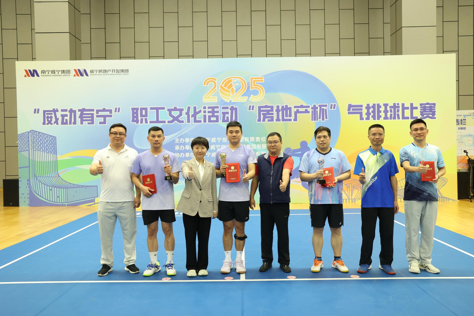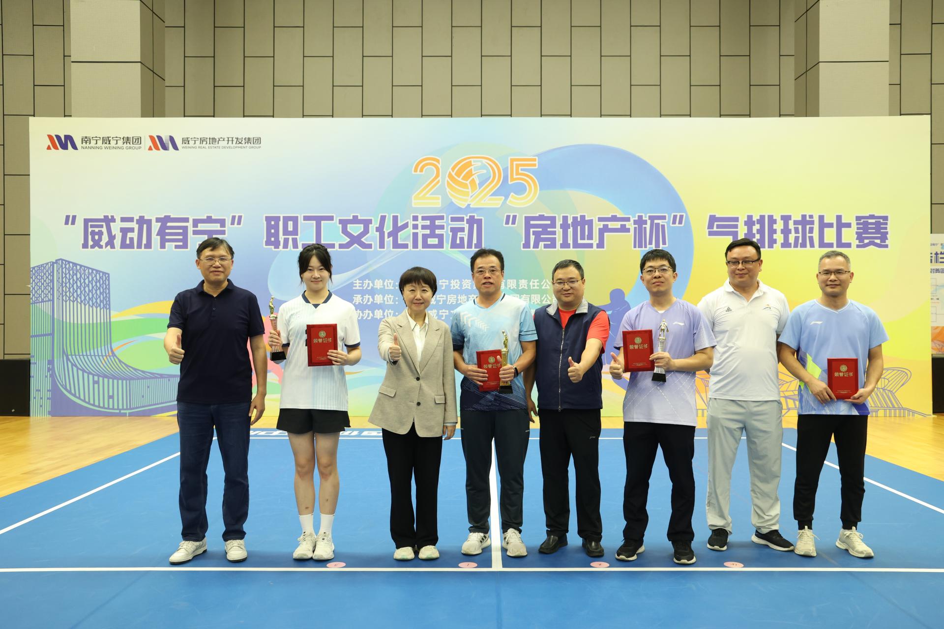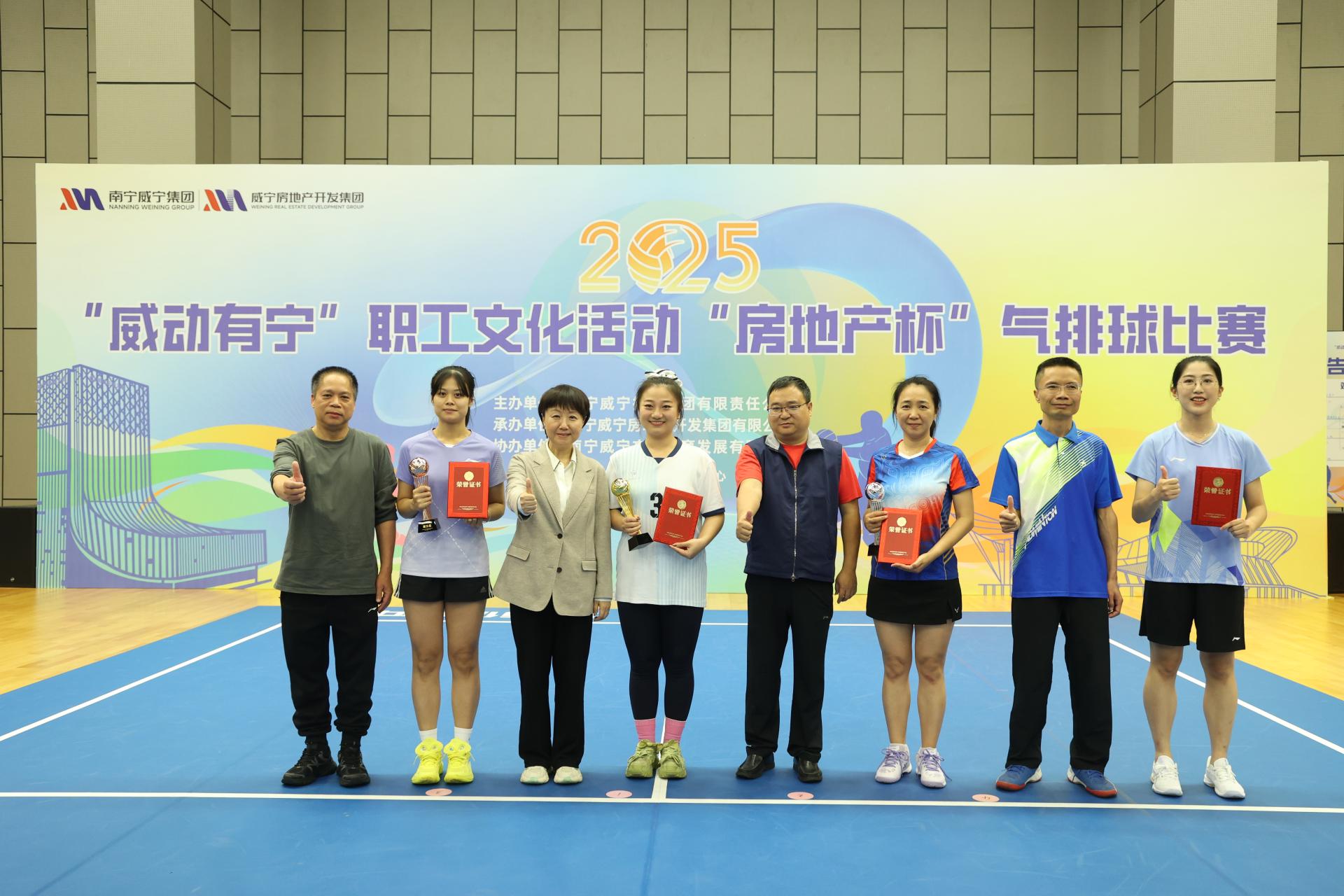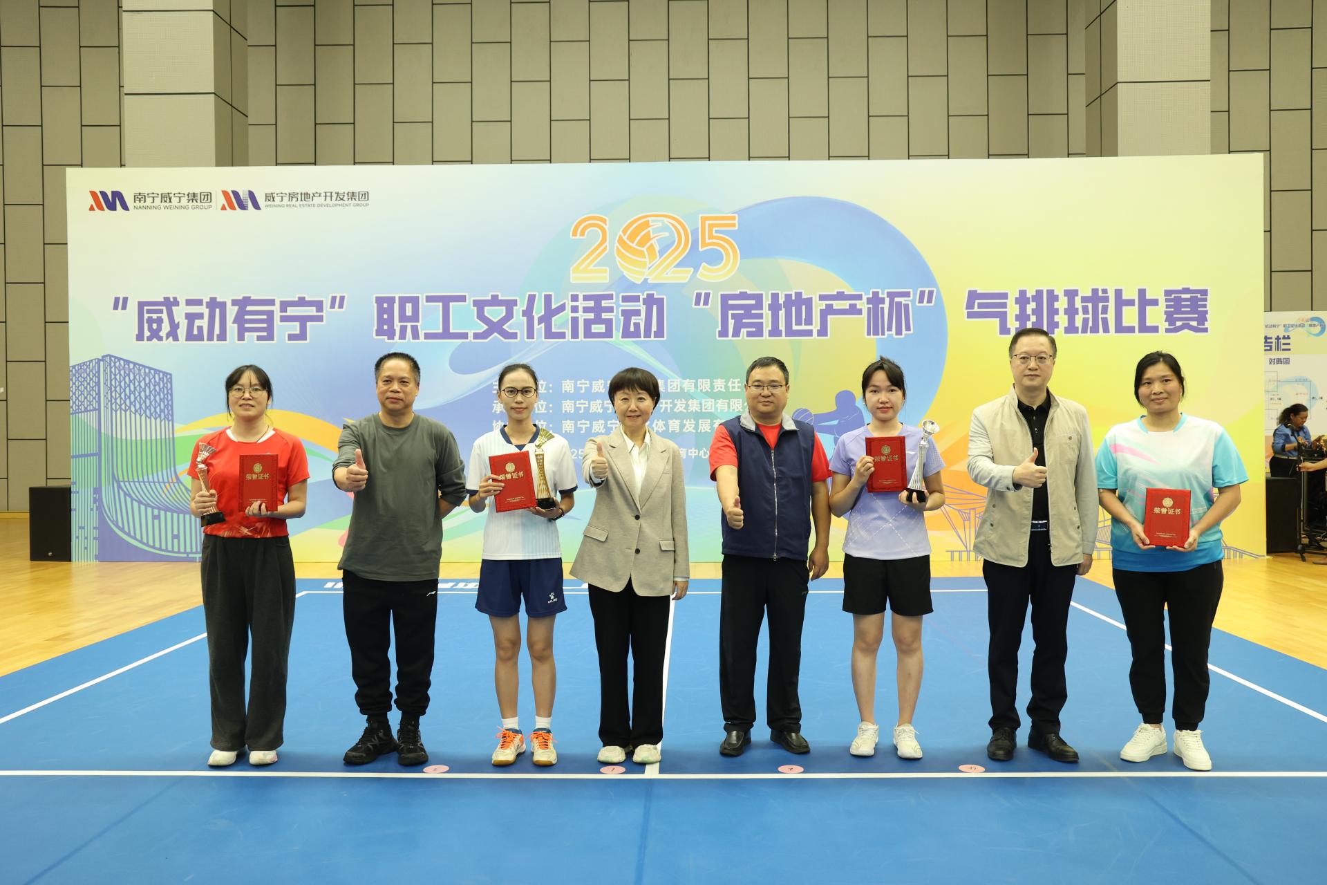 2025年11月16日,隨著最后一場氣排球賽事的終場哨響,南寧威寧集團2025年“威動有寧”職工文化活動在團結、熱烈、拼搏的氛圍中迎來圓滿收官。當天舉行的“房地產杯”氣排球比賽頒獎儀式為這場貫穿全年的文化盛宴畫上了精彩的句號。集團黨委書記、董事長劉巧瑛出席儀式并致閉幕詞,集團黨委副書記、總經理蘇慶威宣布獲獎名單,集團領導班子成員為在系列賽事中獲獎的隊伍頒獎。