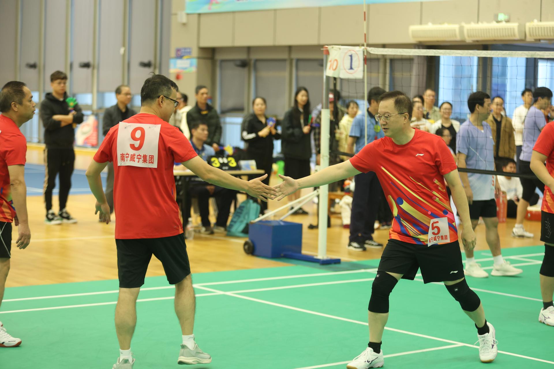 在頒獎儀式上,蘇慶威宣讀了各項賽事的獲獎名單:南寧學院等參賽隊獲羽毛球比賽前四名,威寧房地產開發集團等參賽隊獲乒乓球比賽前四名,南寧學院等參賽隊獲氣排球比賽女子組前四名,南寧文旅集團等參賽隊獲氣排球比賽男子組前四名,威寧資產經營集團等參賽隊獲氣排球比賽領導組前四名。隨后,集團領導們分批為在各項比賽中獲得前四名的隊伍頒發了獎杯和獎狀,并合影留念,共同分享這份屬于奮斗者的榮耀與喜悅。